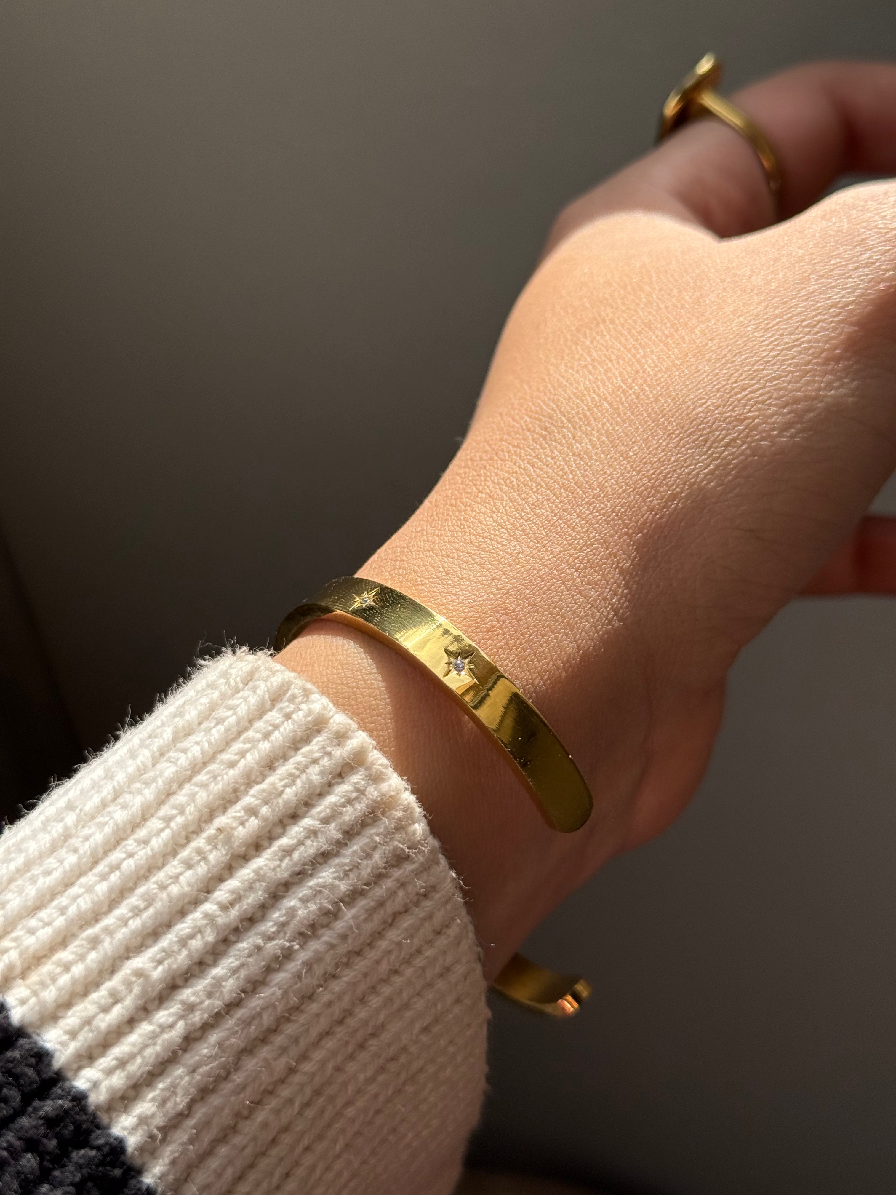 A timeless smooth bangle that works with every outfit—day or night. Made from stainless steel and comes with a 1-year warranty.