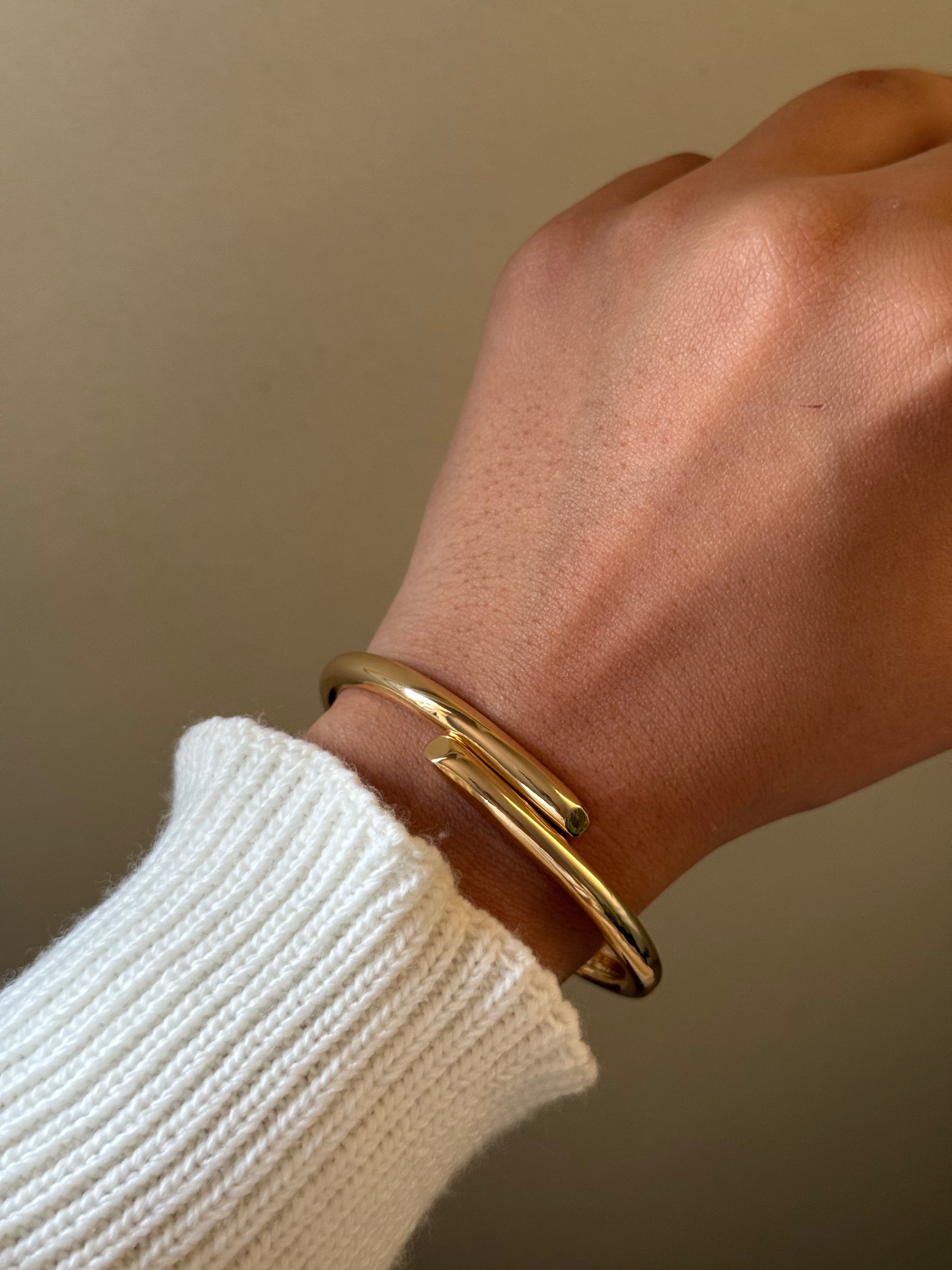 A timeless smooth bangle that works with every outfit—day or night. Made from stainless steel and comes with a 1-year warranty.
